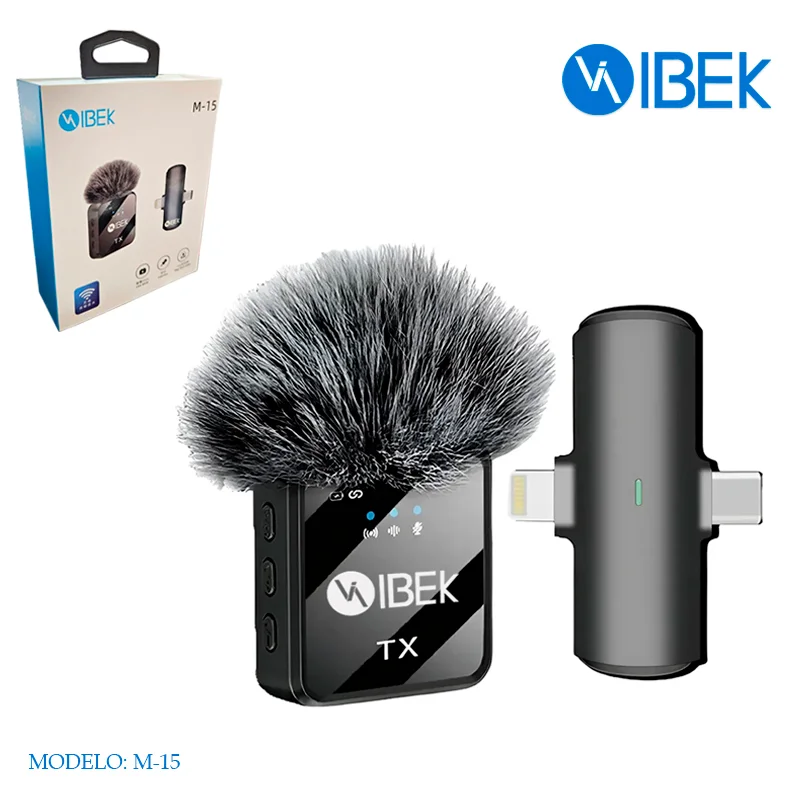MICRÓFONO CORBATERO 2 UNIDADESINALÁMBRICO LAVALIER ROMPEVIENTO IPHONE Y C M-15 IBEK